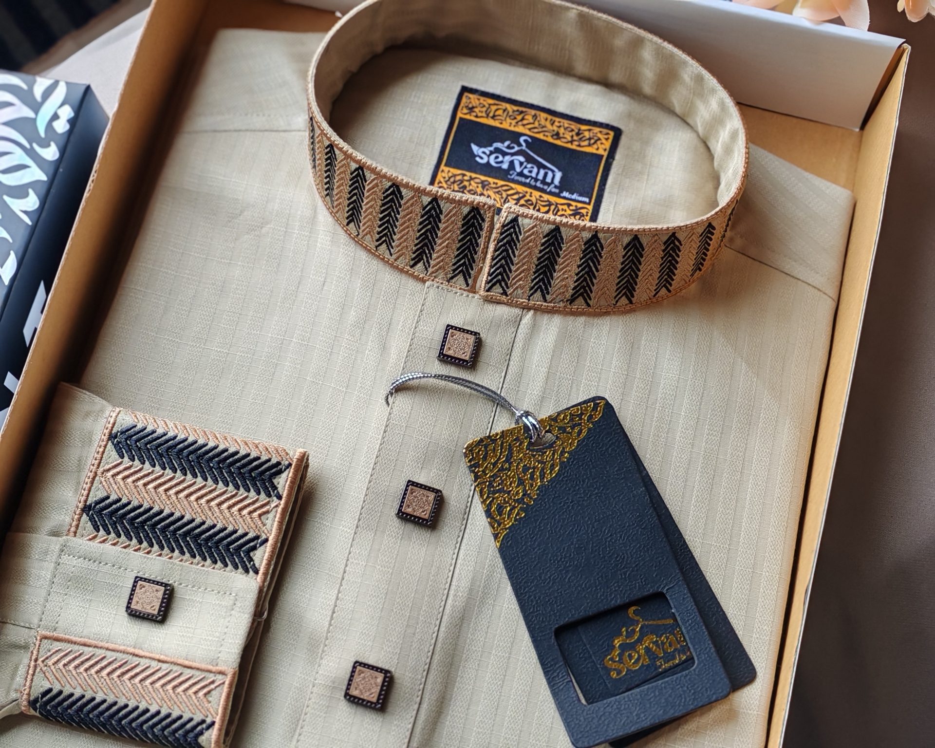 একটি নিখুঁত মিশ্রণ আধুনিকতা ও ঐতিহ্যের—* Cream Color* পাঞ্জাবিটি আপনার স্টাইলকে নতুন উচ্চতায় নিয়ে যাবে। অ্যাশ-গ্রে বেইজের ওপর দারুণ সূক্ষ্ম কারুকাজ, ক্লাসিক বাটন ডিজাইন, এবং আরামদায়ক ফ্যাব্রিক এটিকে করে তুলেছে সব ধরনের অনুষ্ঠানের জন্য আদর্শ।