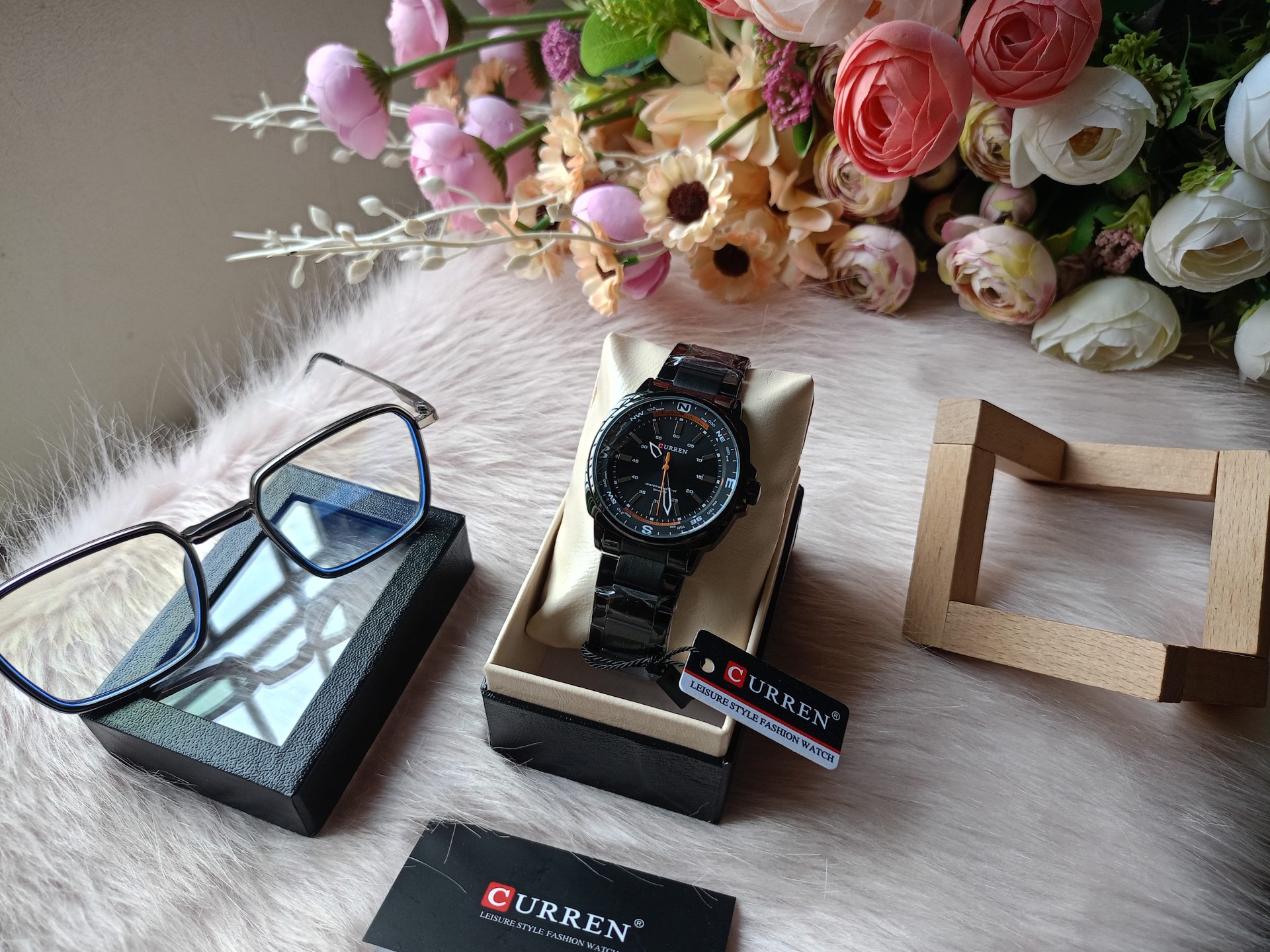 Product details of CURREN 8455 Luminous Stainless Steel Quartz Watch For Men – Silver Blue Color