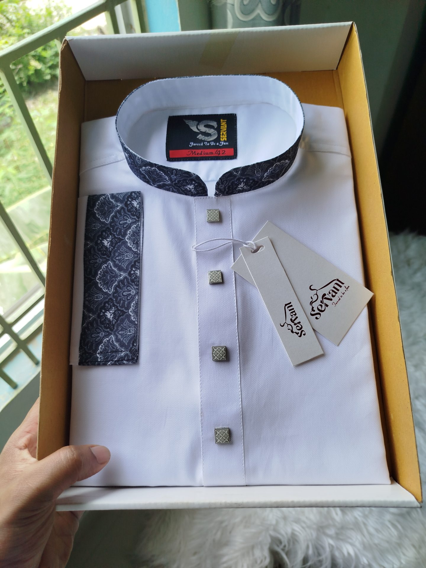 -ফেব্রিকস টি ধোয়ার পড়ে সামান্য খাপার সম্ভাবনা রয়েছে তাই অতিরিক্ত ফিটিং না নেবার বিষয়টি বিবেচনায় থাকতে পারে।